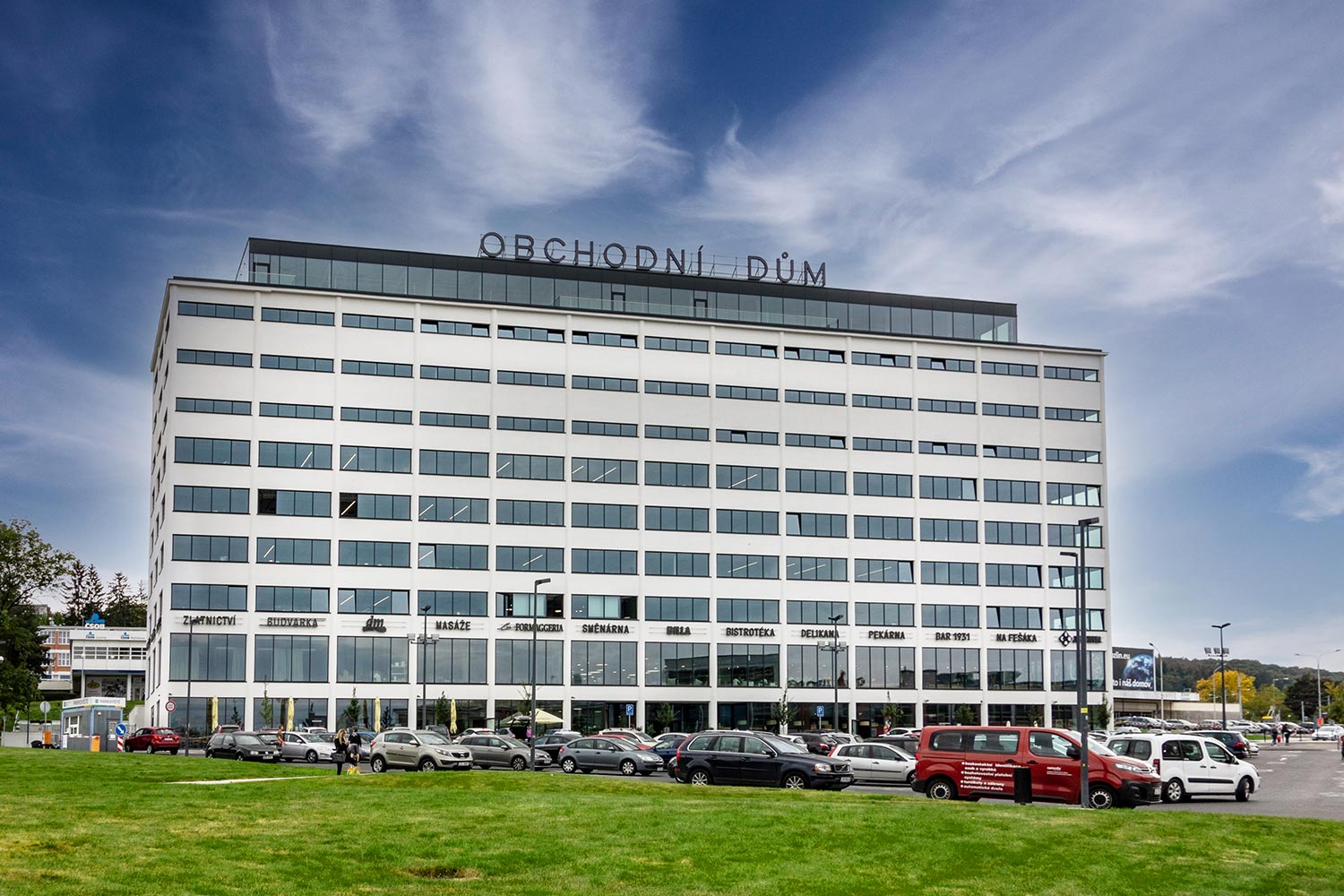 Obchodní dům ve Zlíně je názorným příkladem, jak je možné pracovat s jasně danými pravidly pro grafiku i umístění nápisů, když se v objektu nachází více nájemníků. Férové řešení podtrhuje architekturu domu. Nápisy jsou umístěny v jedné linii a s jednotnou barevností.